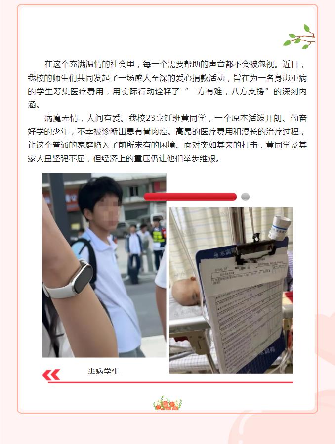 爱心汇聚 为病重学子点亮希望之光——我校团委举行爱心捐款活动