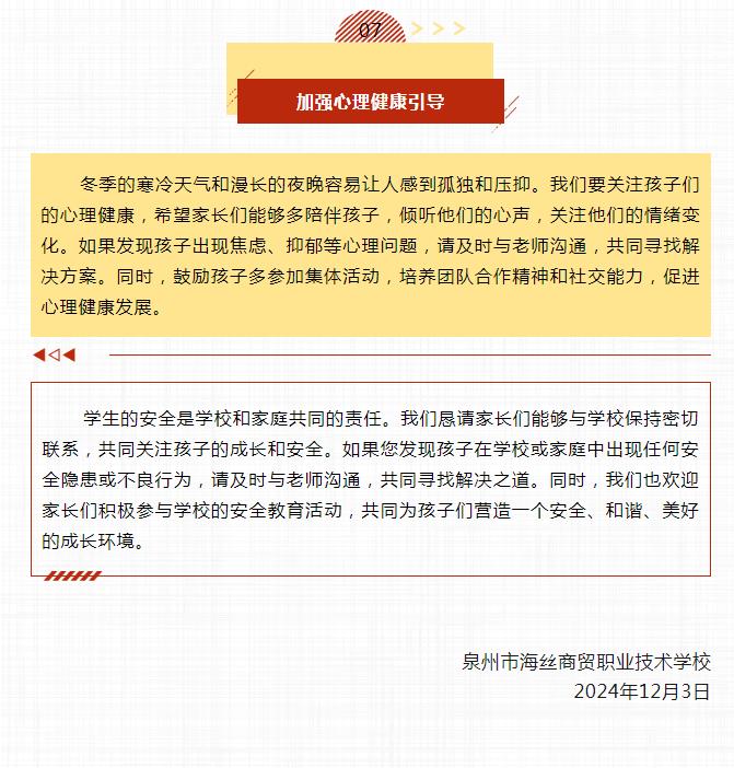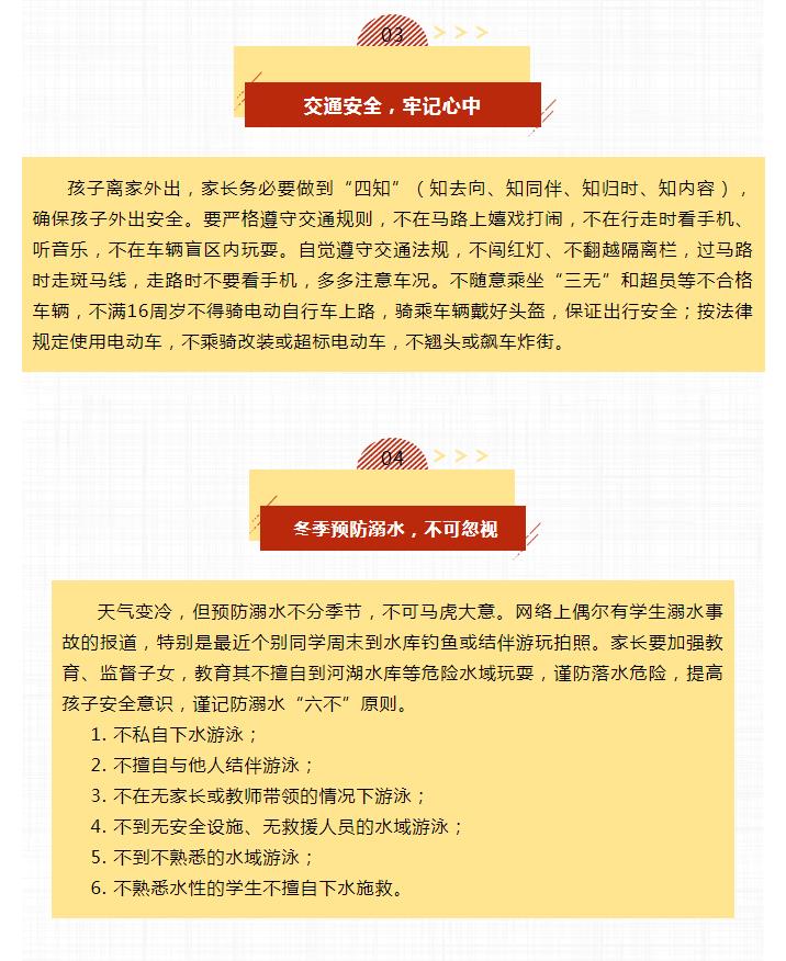 安全教育 @家长、学生 您有一份2024年冬季安全告知书,请查收!