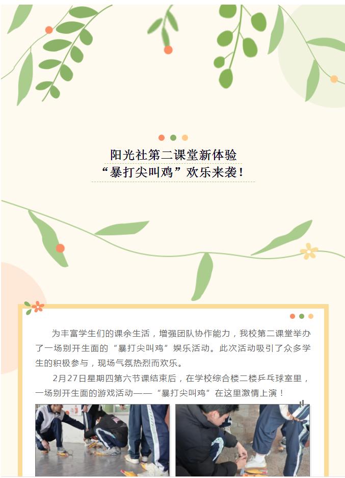 阳光社第二课堂新体验:《暴打尖叫鸡》欢乐来袭!