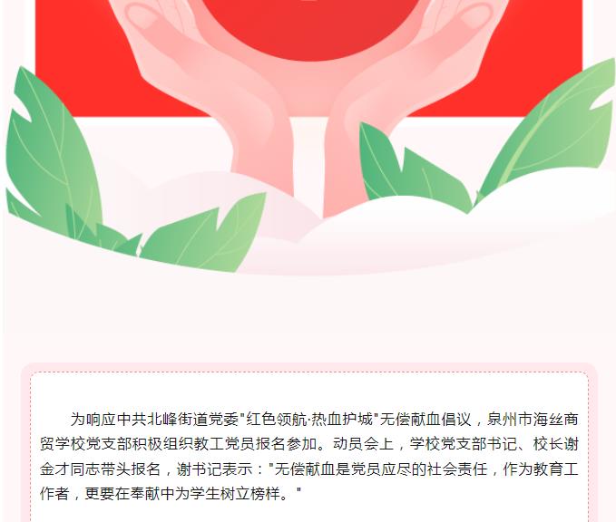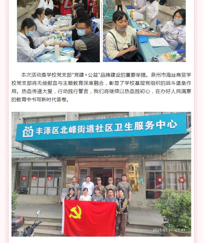 党员先锋献血行 初心使命显光辉——中共泉州市海丝商贸职业技术学校党支部开展热血铸党魂主题献血活动