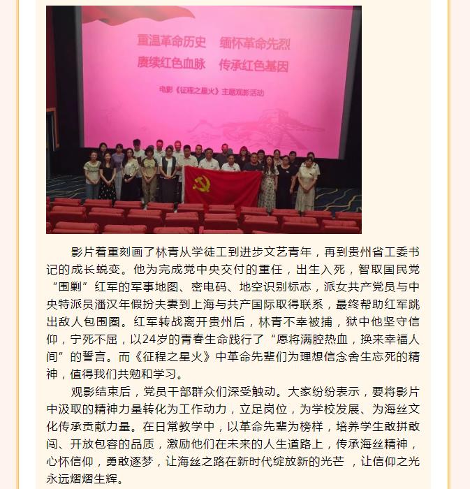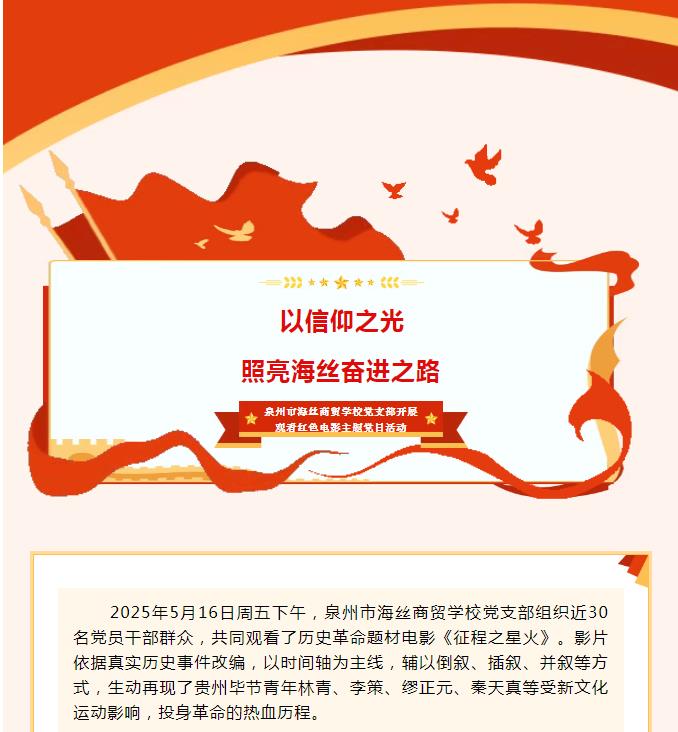 以信仰之光 照亮海丝奋进之路 ——泉州市海丝商贸学校党支部开展观看红色电影主题党日活动