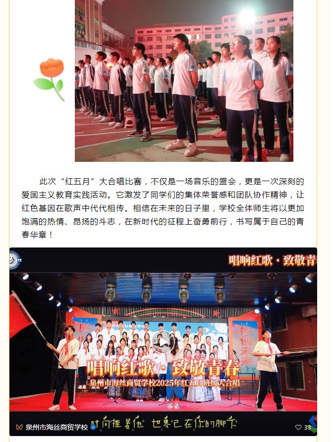 青春之声 唱响红五月——泉州市海丝商贸学校红五月大合唱比赛圆满落幕