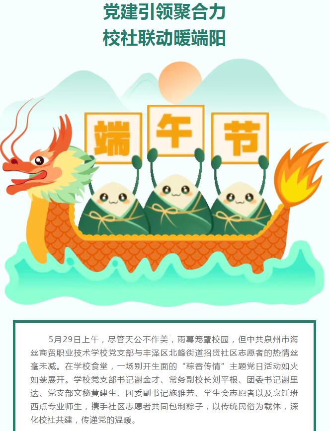 党建引领聚合力 校社联动暖端阳——中共泉州市海丝商贸职业技术学校党支部联合招贤社区开展“粽香传情”主题党日活动