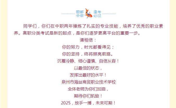 【温馨提醒】致2025年参加高职分类考试的商贸学子们:乘风破浪,勇往“职”前