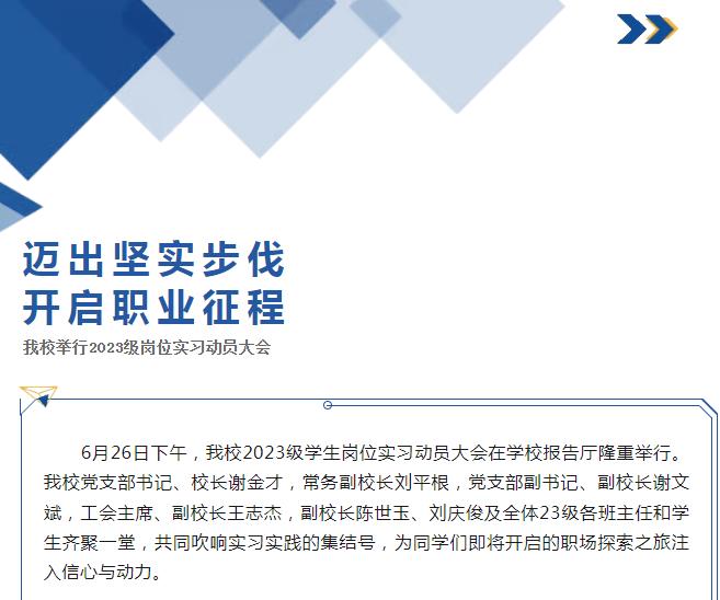 迈出坚实步伐 开启职业征程——我校举行2023级岗位实习动员大会
